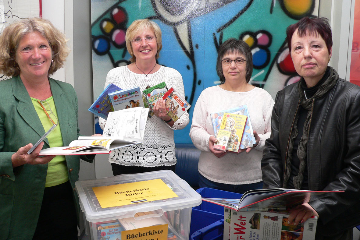 v.l.: Vorsitzende des Fördervereins der Stadtbibliothek Ruth Heine, Sylvia Konze (Leiterin der Kinder- und Jugendbibliothek), Bärbel Roggon (Stadtbibliothek) und Dr. Reinildis Hartmann (stellv. Vorsitzende Förderverein)