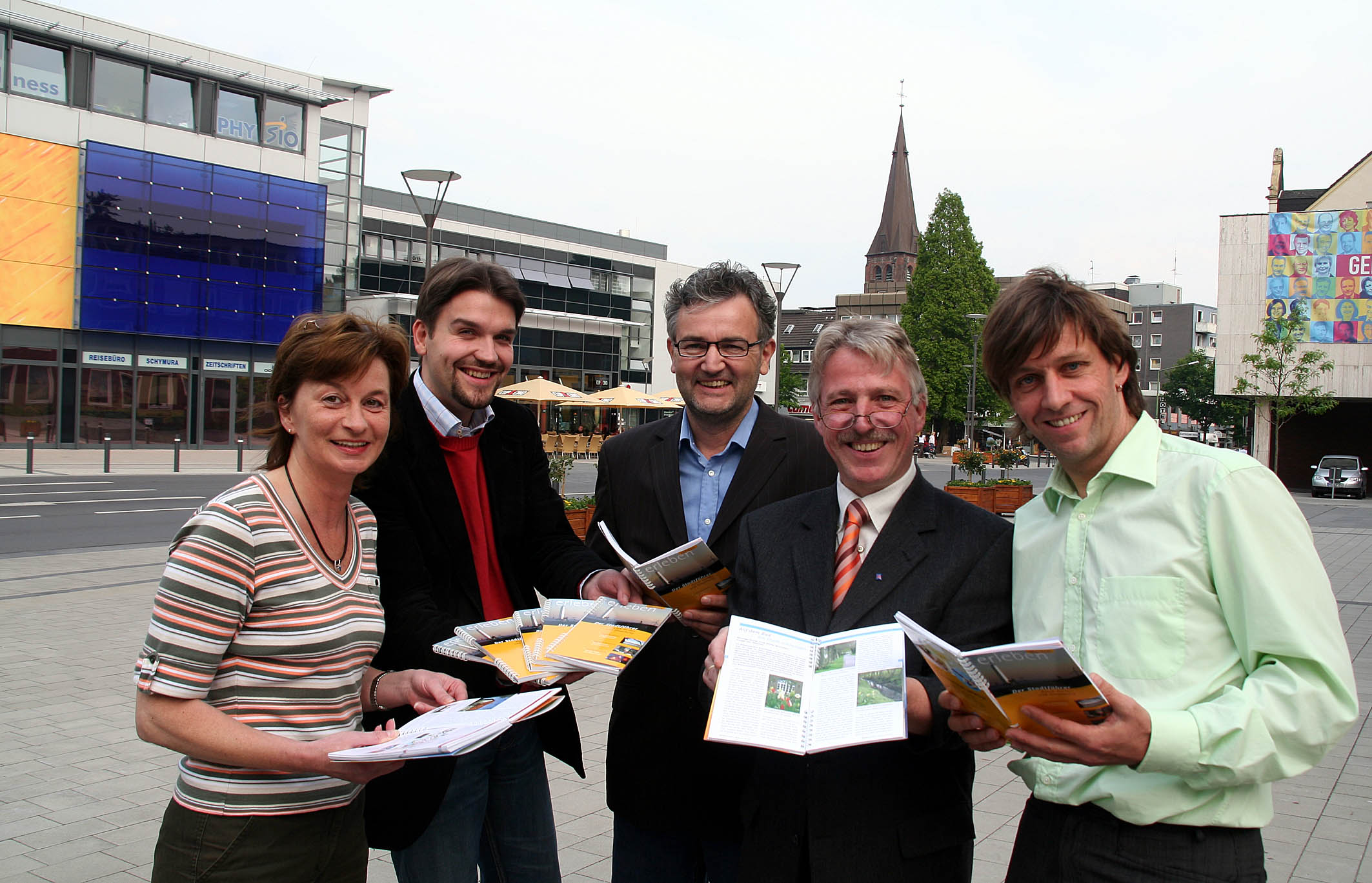 Freuen sich über das gelungene Produkt: (die Herausgeber v.li.) Doris Palicki (Lebendiges Herten), Uli Paetzel (Bürgermeister), Hermann Berger (Deutscher Hotel- und Gaststättenverband), Adrian Gülden (Verkehrsverein Herten) und Oliver Mau (Haidhausen-Verlag / Herten erleben).
