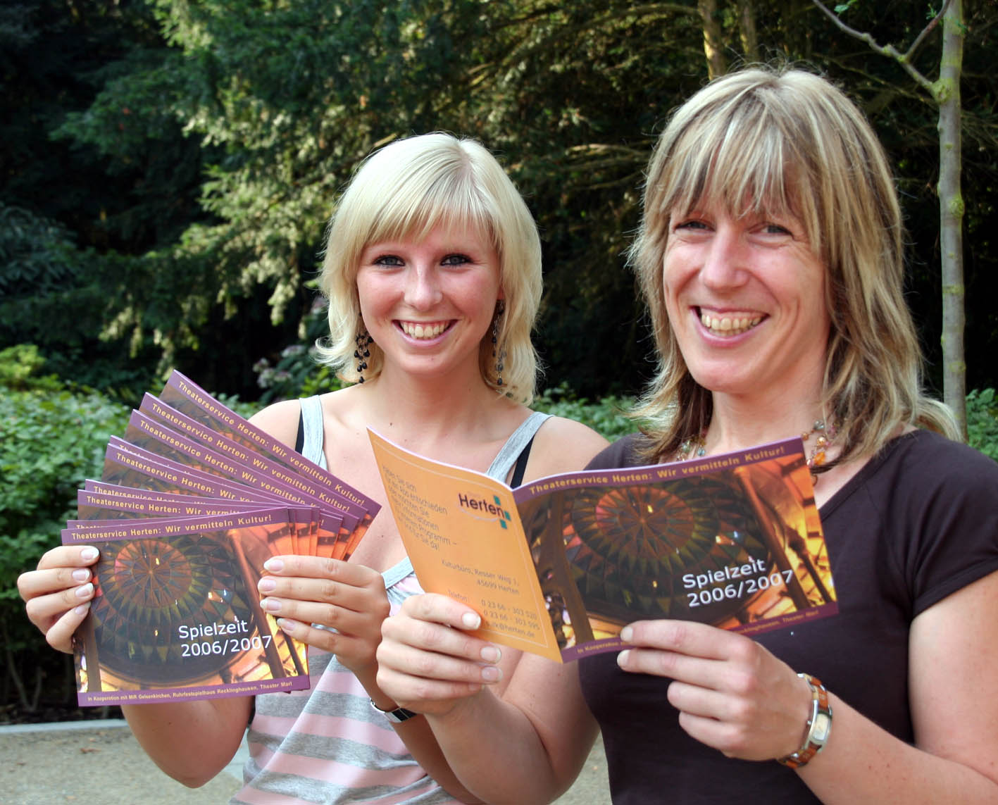 Sarah Markus (li.) und Sabine Ilk vom Kulturbüro der Stadt Herten präsentieren das aktuelle Programm zu den Theaterfahrten 2006.