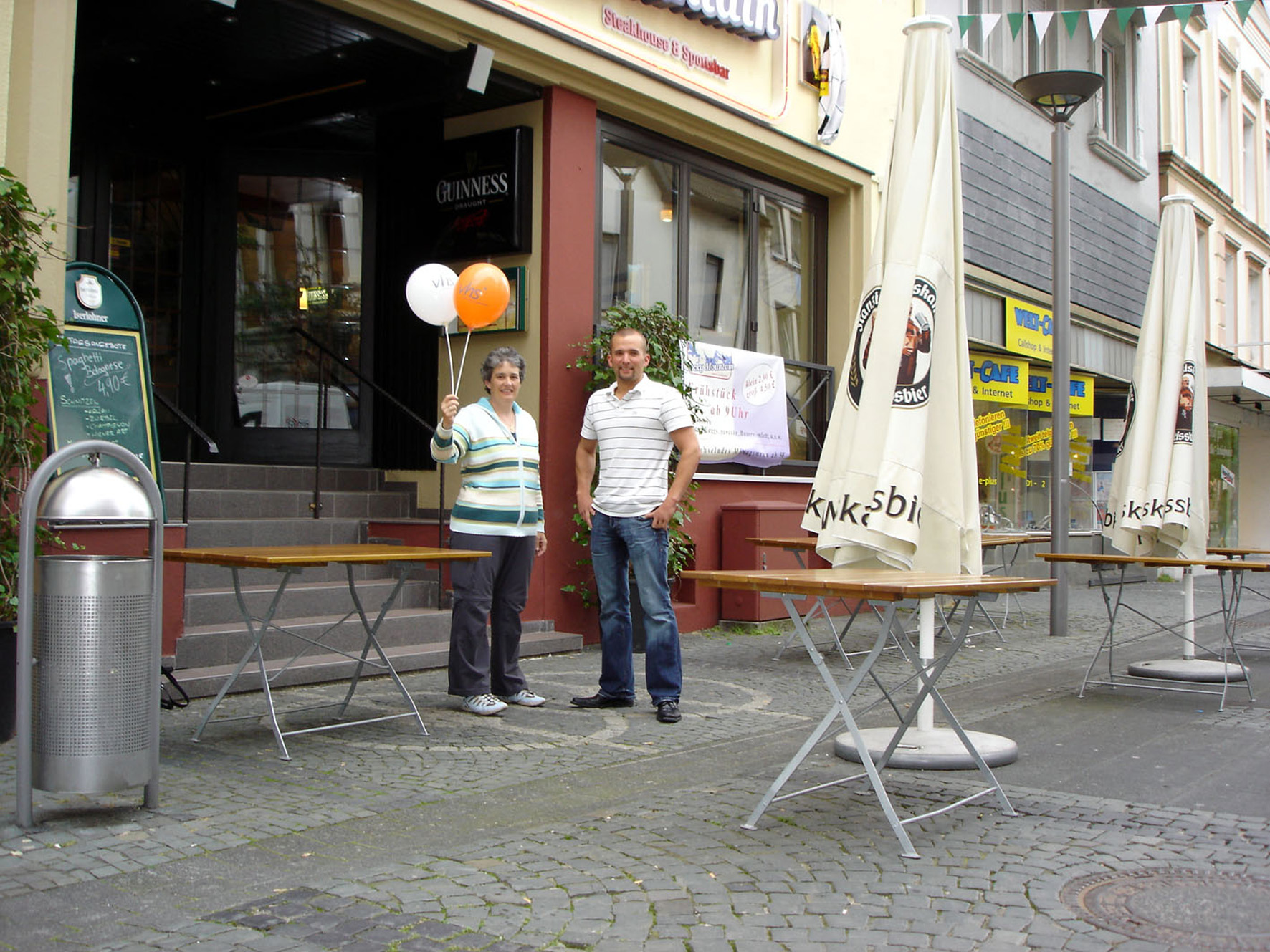 VHS-Dozentin Christine Ueberacker-Evans und Tobias Schneider, Geschäftsführer des Lokals “Rocky Mountain“, freuen sich auf Interessierte, die Englisch sprechen wollen.
