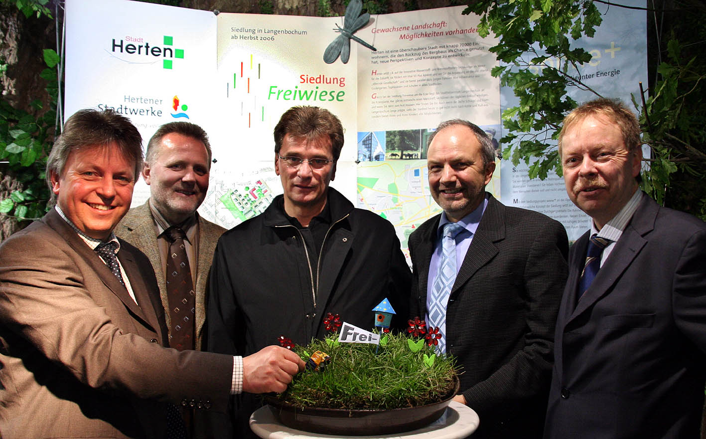 Sind überzeugt vom Projekt "Freiwiese" - und freuen sich über den positiven Zuspruch der Bauwilligen (v.l.) Detlef Großjohann, Gisbert Büttner, Stephan Kahl, Uwe Hauschild und Volker Lindner.