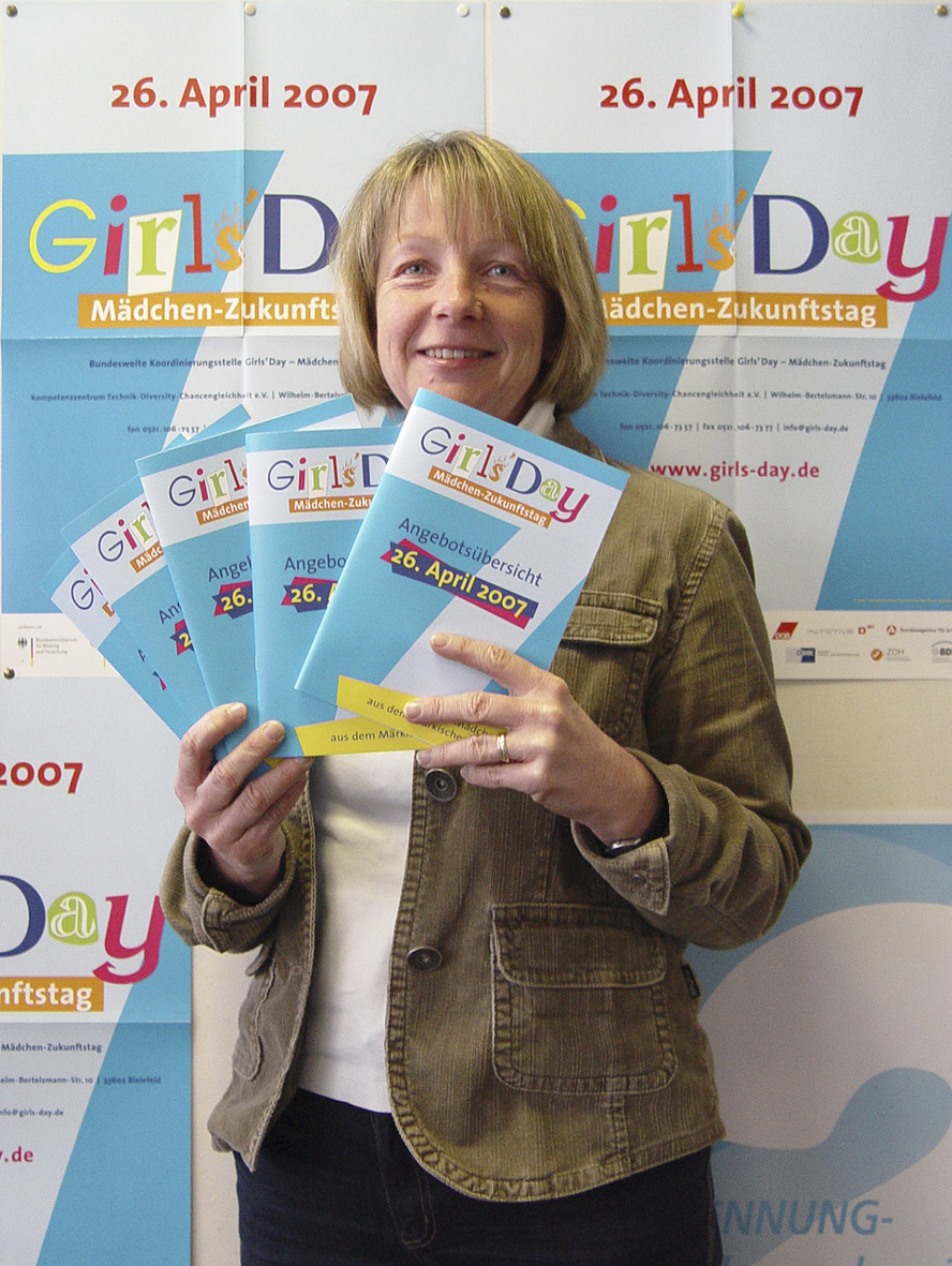 Die pädagogische Mitarbeiterin der Gleichstellungsstelle Helena Haack informiert über den Girls’ Day 2007 in Iserlohn.