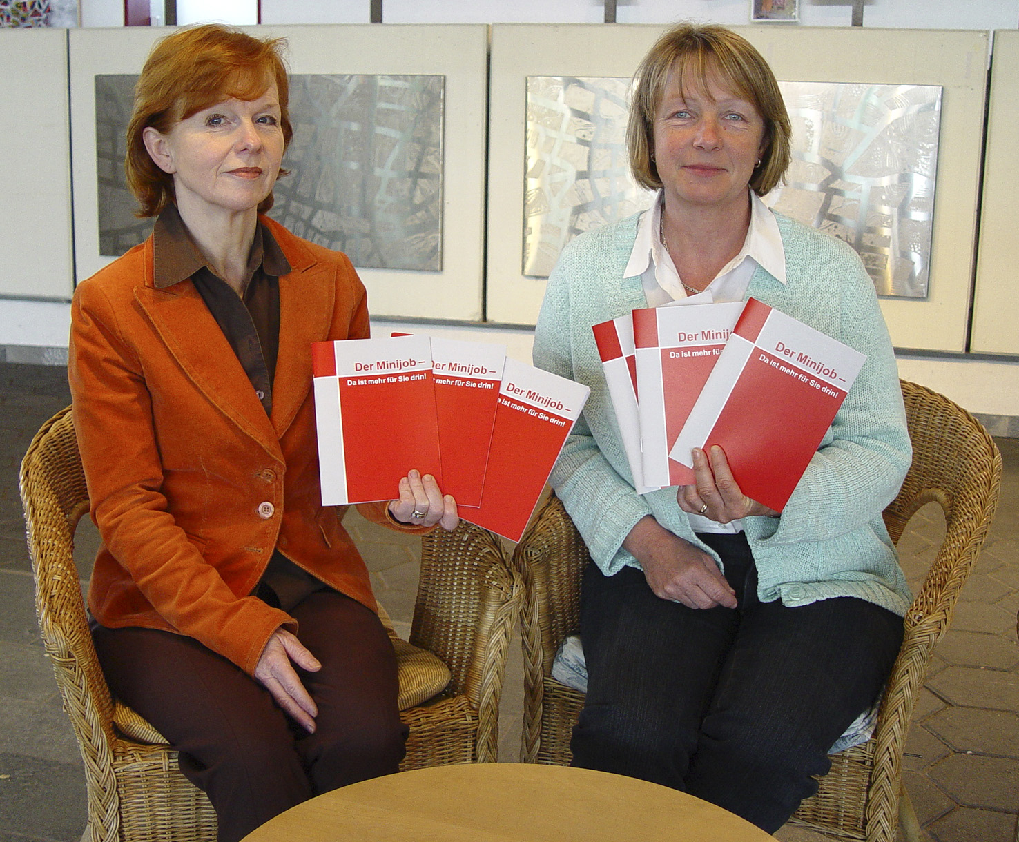 Mechtild Beike und Helena Haack von der städtischen Gleichstellungsstelle mit der neuen Broschüre "Minijob - Da ist mehr für Sie drin!"
