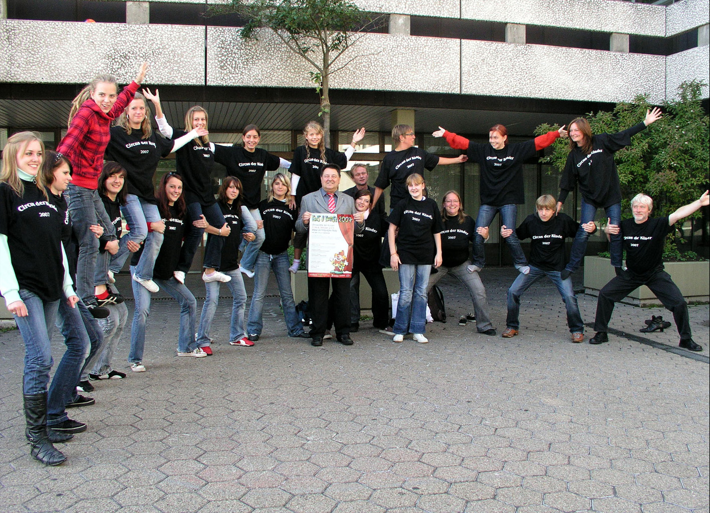 Bürgermeister Klaus Müller stellte gemeinsam mit den Circustrainern das Projekt “Kids und Kunst 2007" vor.
