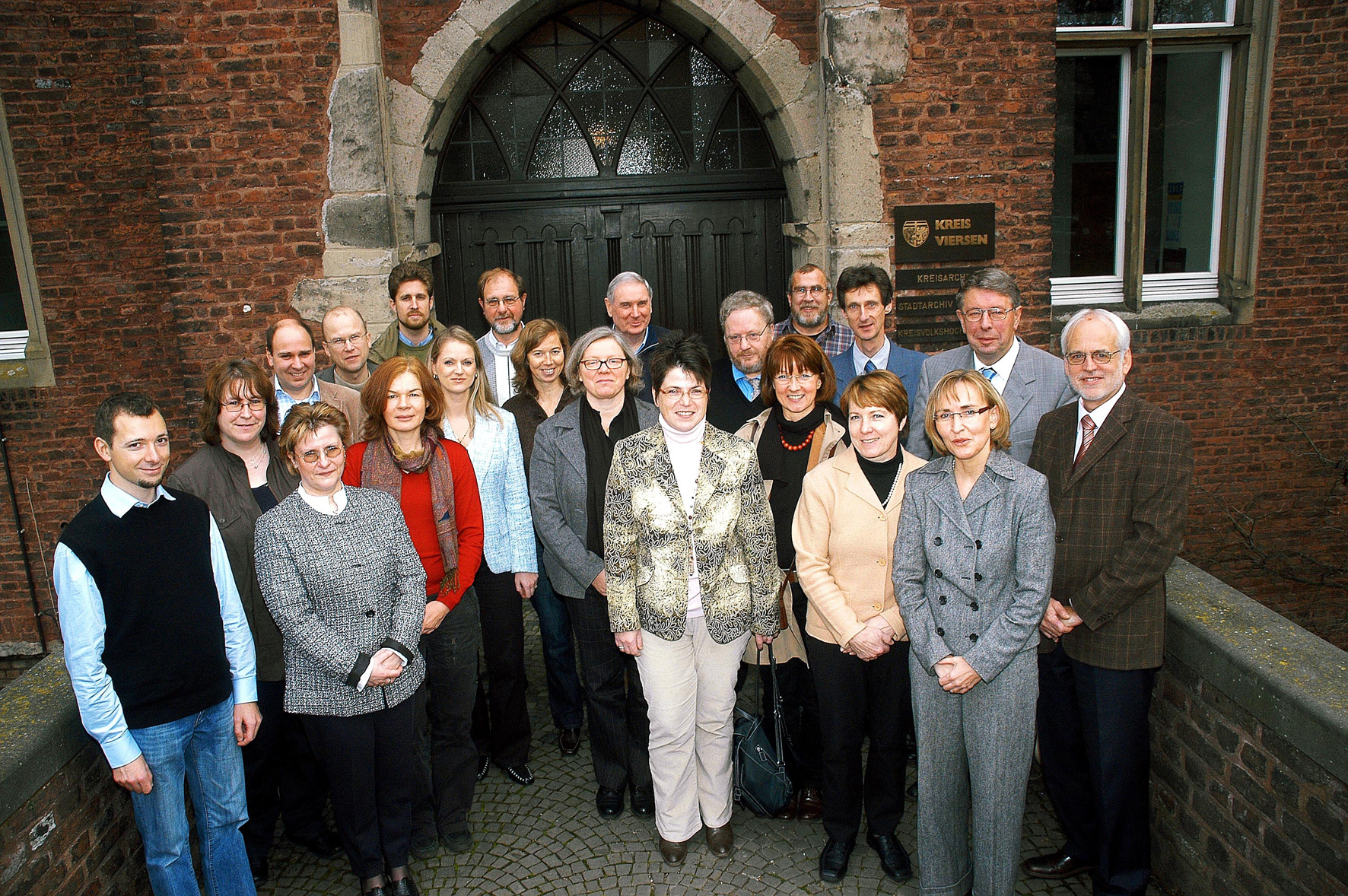 18 Mitglieder des Arbeitskreises der Nordrhein-Westfälischen Kreisarchivare trafen sich zu ihrer Sitzung in der Burg in Kempen. Dr. Gerhard Rehm (2. Reihe 4. von rechts), Leiter des Kreisarchivs Viersen, begrüßte die Gäste um Prof. Dr. Leo Peters, den Vorsitzenden des Arbeitskreises. Foto: Horst Siemes/Kreis Viersen - Abdruck honorarfrei