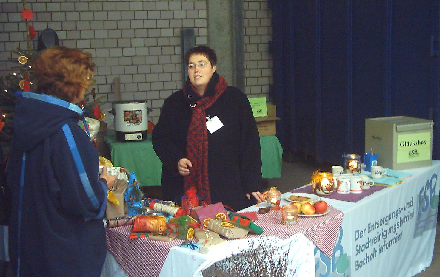Abfall-Expertin Petra Somborn klärt bei Punsch und Keksen über umweltfreundliche Geschenkverpackungen auf. (Foto: ESB)
