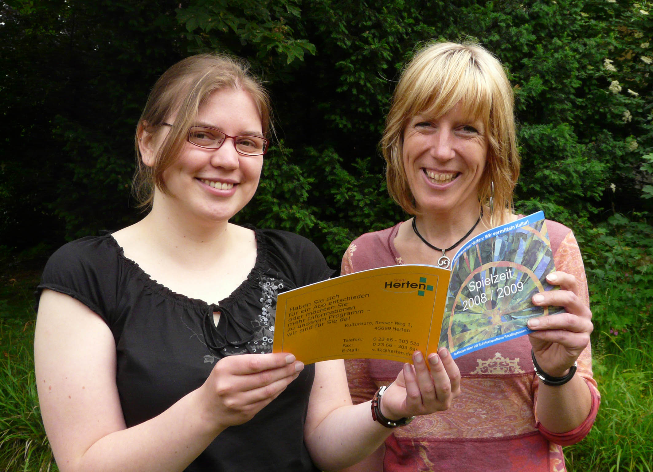 Viel Spannendes ist im neuen Theaterservice-Angebot des Hertener Kulturbüros zu finden - hier präsentiert von Organisatorin Sabine Ilk und Prakikantin Carina Römer.