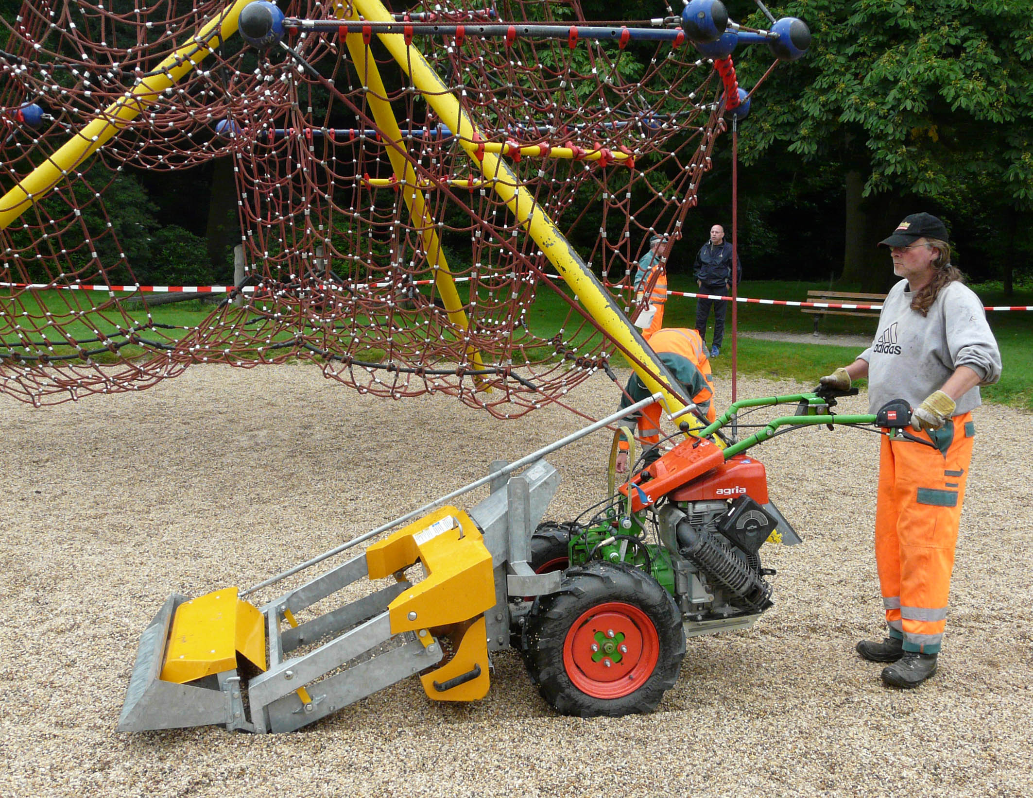 Thomas Kujawa reinigt den feinen Kies mit einer Maschine. Sie siebt die verbliebenen Scherben aus dem Kies.