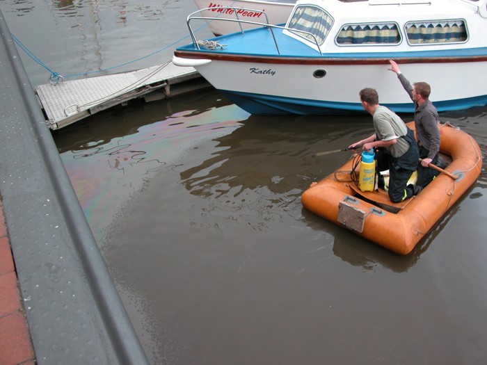 Beseitigung der Ölspur durch die Ölschadengruppe der Norder Feuerwehr