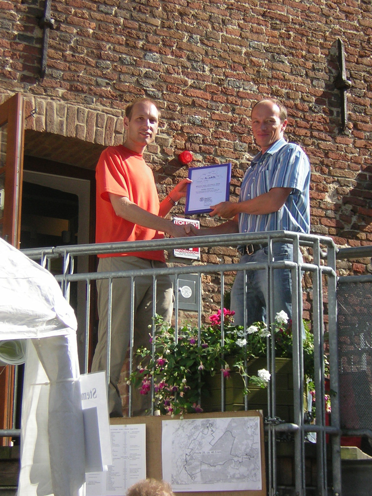 Steffen Bayerlein (rechst) ist der "Radler des Jahres". Er erhielt jetzt von Jan Bartels vom ADFC die Urkunde. Foto: Kreis Viersen - Abdruck honrorafrei