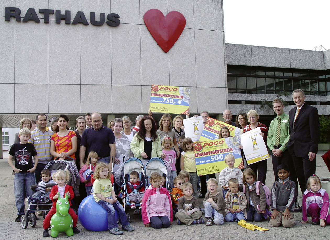 Die neunzehn Hauptgewinner der Familienbonuskarten-Verlosungsaktion freuten sich über ihre Preise, die ihnen im Iserlohner Rathaus im Beisein von Vertretern einiger Sponsorenfirmen überreicht wurden.