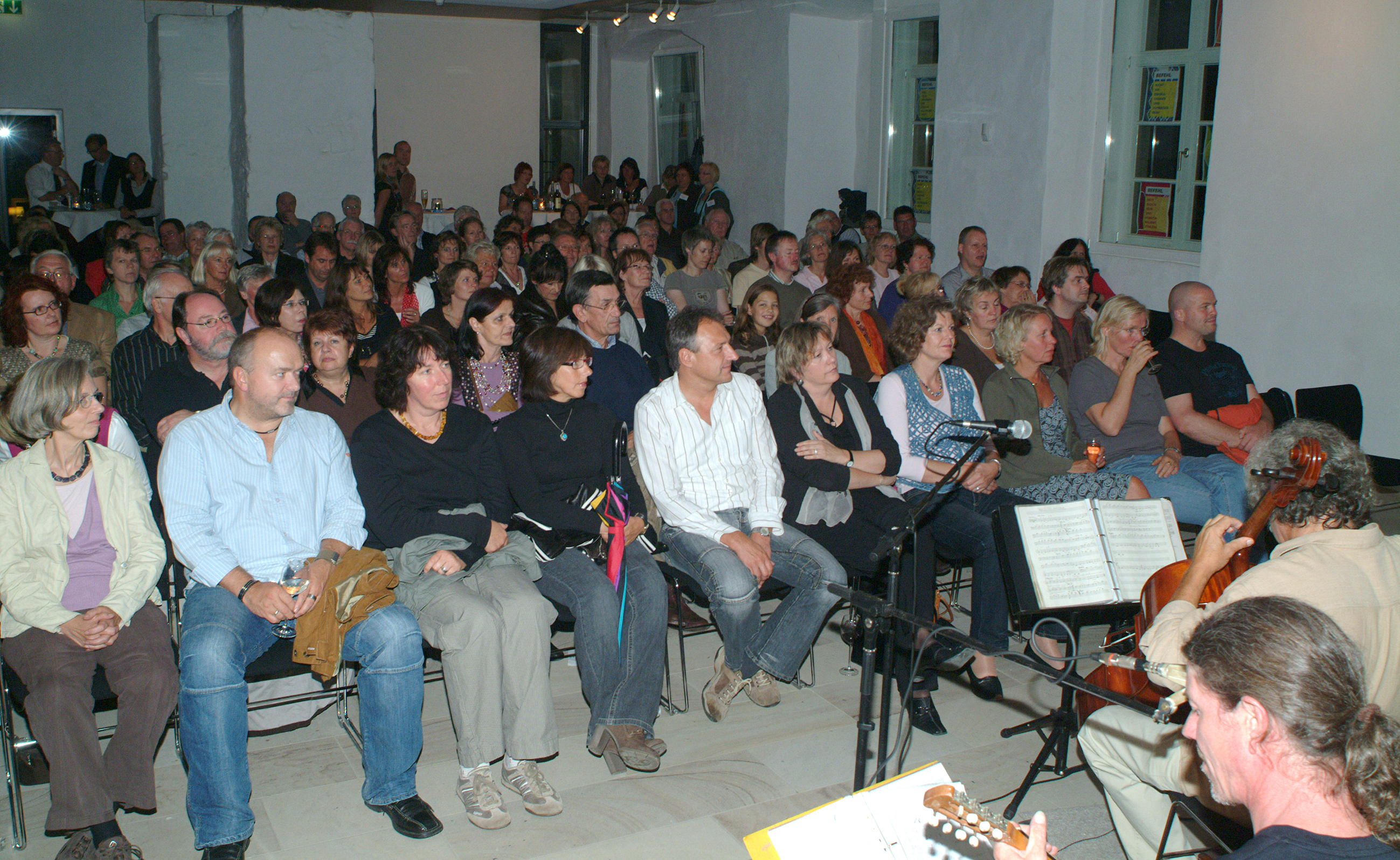 Vom Innenhof ins Gebäude zog kurzerhand die italienische Nacht im DA, Kunsthaus Kloster Gravenhorst - der guten Stimmung tat das überhaupt keinen Abbruch. Fotos: D. Böing