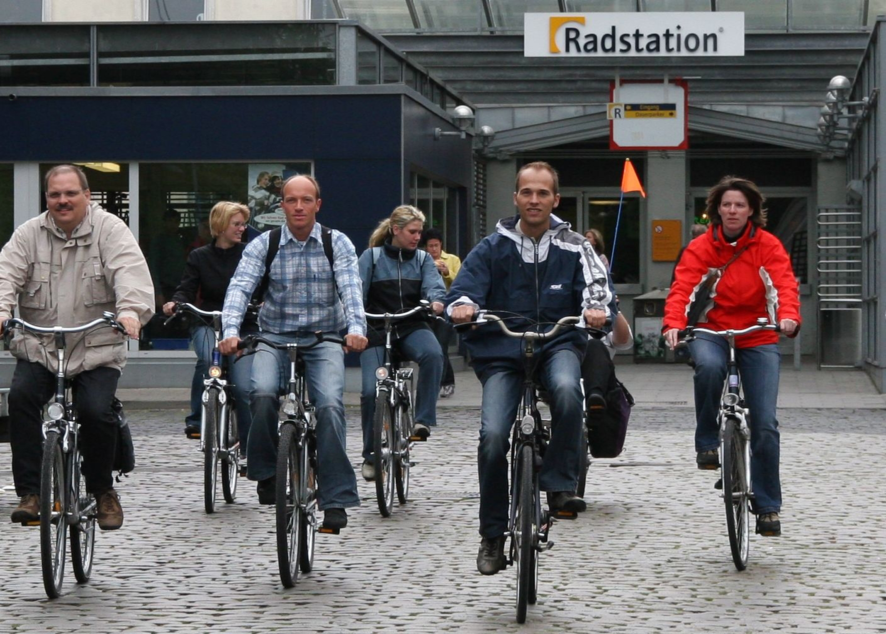Am Bahnhof in Neuss startete Steffen Bayerlein (2. von links) gemeinsam mit Peter London vom Ministerium für Bauen und Verkehr Nordrhein-Westfalen, Benjamin Josephs, Radverkehrsbeauftragter des Rhein-Kreises Neuss, und Silvia Stiels, Nordrhein-Westfalen Tourismus (von links) auf die 100 Kilometer lange Radtour. Foto. Kreis Viersen - Abdruck honorarfrei