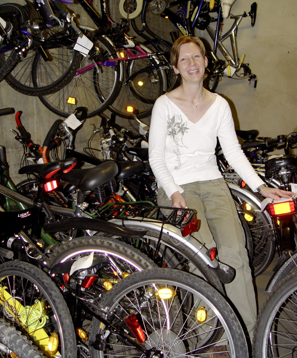 Bringt bei der nächsten Fundsachen-Versteigerung im Iserlohner Rathaus am 9. Oktober 2008 ausschließlich Fahrräder “unter den Hammer”: Ortrun Davis vom städtischen Fundbüro.