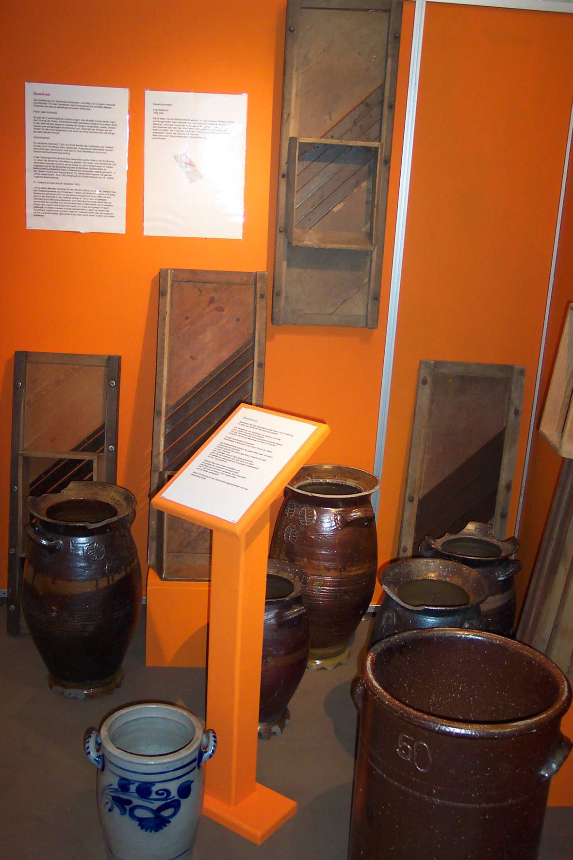 Die Sonderausstellung im Niederrheinischen Freilichtmuseum zeigt eine Auswahl der verschiedenen Steintöpfe, in denen früher Sauerkraut aufbewahrt wurde. Foto: Kreis Viersen - Abdruck honorarfrei