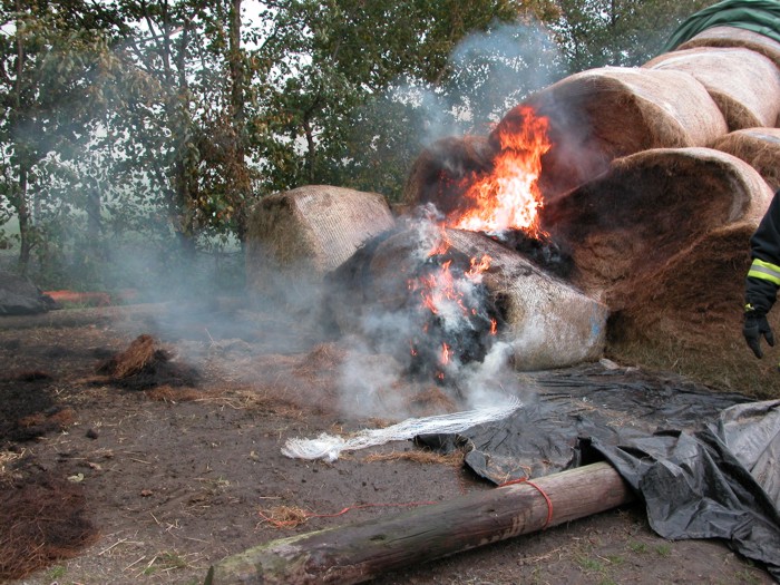 Brand von Heu-Rundballen auf einem Bauernhof am Warferweg