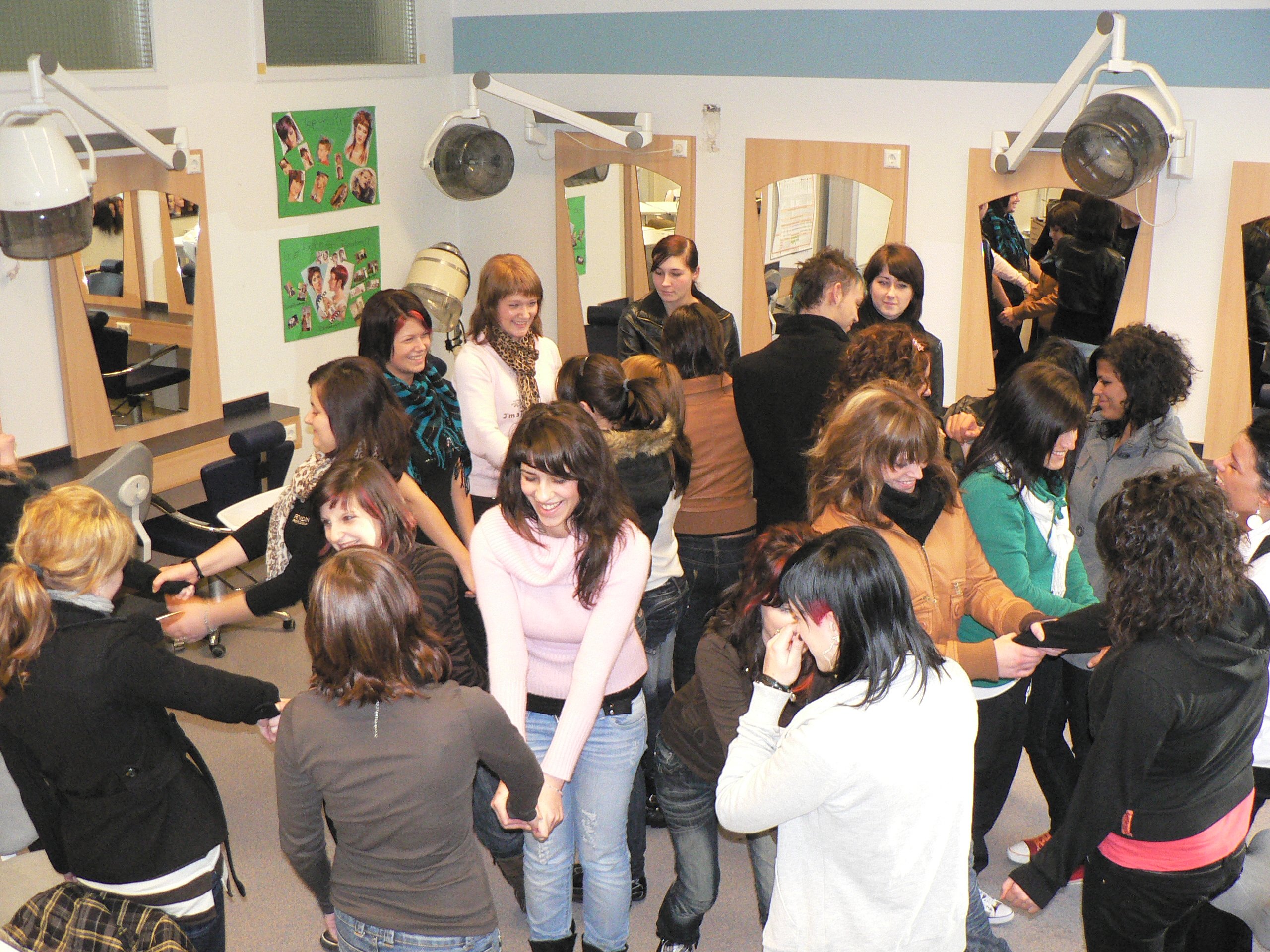 Friseur-Azubis in der Bewegungs- u. Motivationspause