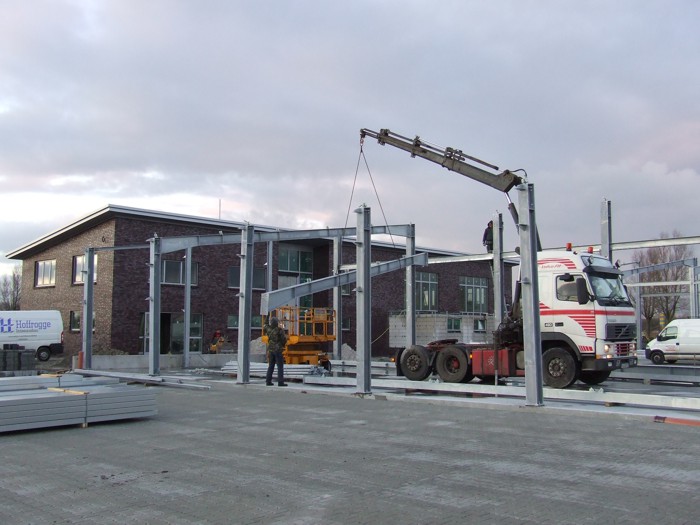 Bau des Hilfeleistungszentrums: Die Fahrzeughallen werden zurzeit aufgebaut