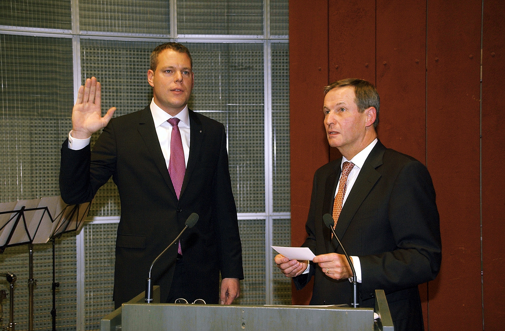 Dr. Andreas Coenen (links) wurde jetzt von Landrat Peter Ottmann zum Kreisdirektor ernannt und vereidigt. Foto: Horst Siemes/Kreis Viersen - Abdruck honorarfrei