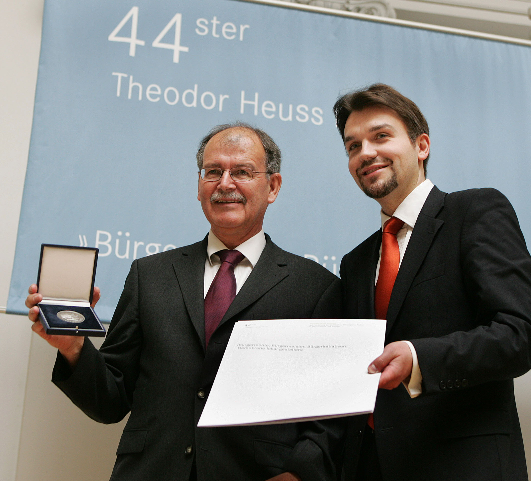 Gerd Gramann (Hertener Bürgerstiftung, li.) und Bürgermeister Dr. Uli Paetzel mit der Medaille und der dazugehörigen Urkunde. Pressefoto Kraufmann & Kraufmann GmbH