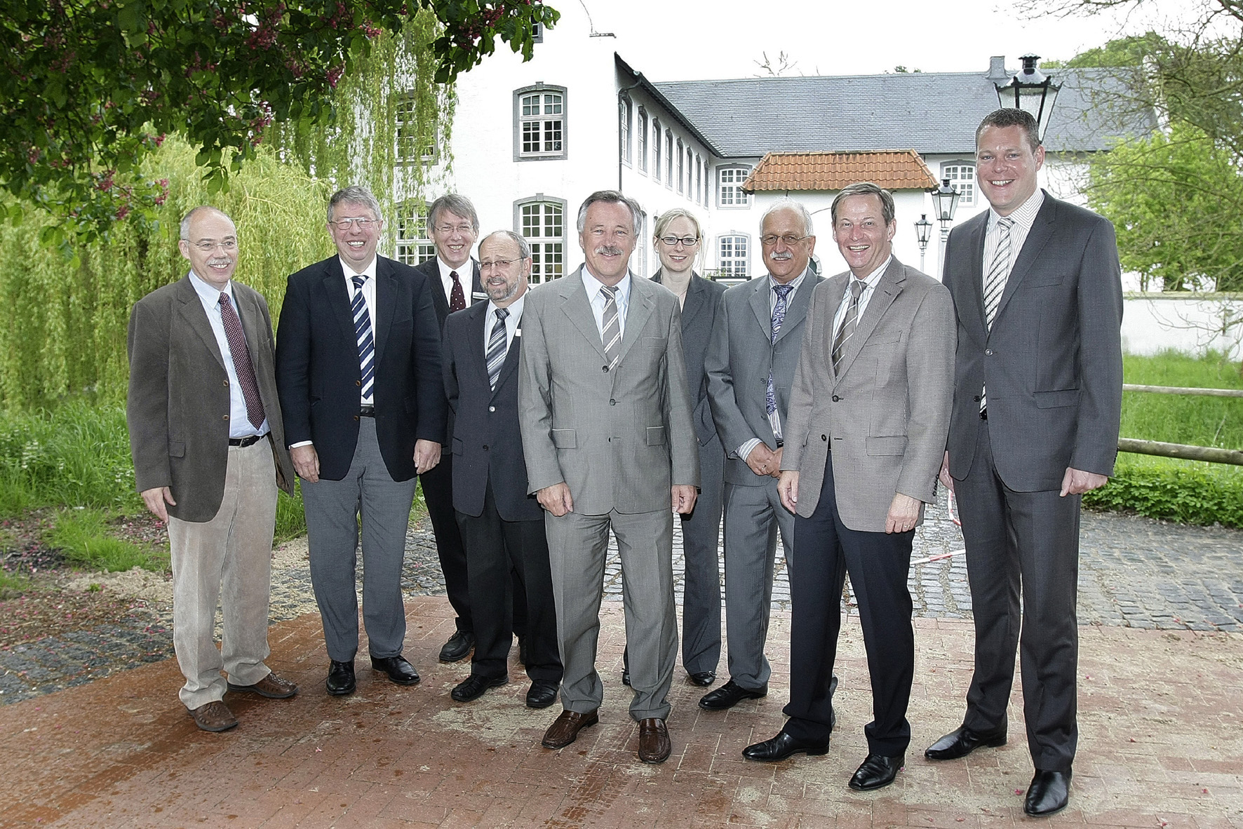 Verwaltungskonferenz in Grefrath mit Wolfgang Rive, Kämmerer der Gemeinde Grefrath, Schul- und Kulturdezernent Professor Leo Peters, Dieter Kumstel, Leiter des Amtes für Technischen Umweltschutz und Kreisstraßen, Kämmerer Wilhelm Horster, Grefraths Bürgermeister Herbert Kättner, Dr. Miriam Osadnik, Persönliche Referentin des Landrates, Dr. Michael Räppel, Bauamtsleiter Grefrath, Landrat Peter Ottmann und Kreisdirektor Dr. Andreas Coenen (von links). Foto: Alois Müller/Kreis Viersen - Abdruck honorarfrei