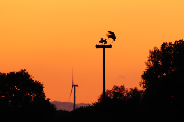 Seit einigen Wochen hält sich ein Weißstorch-Paar im Gelände an der Clörather Mühle auf. Foto: Hans-Georg Wende - Abdruck honorarfrei