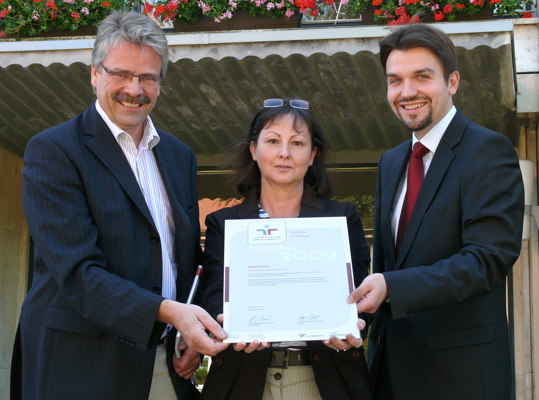 v.l.: Peter Brautmeier (Fachbereichsleiter Zentrale Dienste), Heike Paesler (Auditverantwortliche), Bürgermeister Dr. Uli Paetzel.