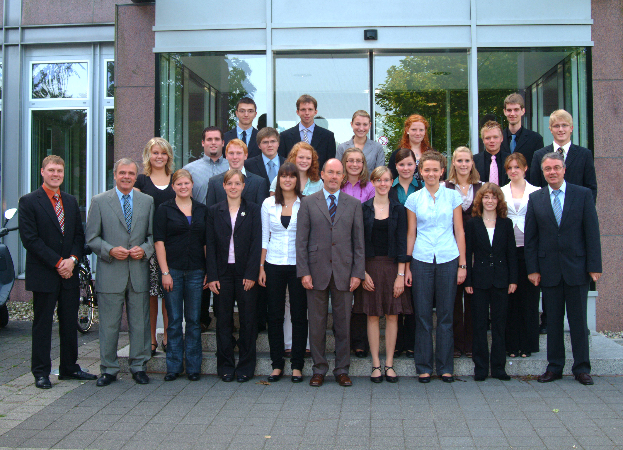 Herzlich willkommen: Landrat Thomas Kubendorff (M.) begrüßte heute gemeinsam mit Kreisdirektor Dr. Wolfgang Ballke (2.v.l.), Personalamtsleiter Ulrich Oletti (r.) und Ausbildungsleiter Markus Möllers (l.) 22 neue Auszubildende in der Kreisverwaltung.