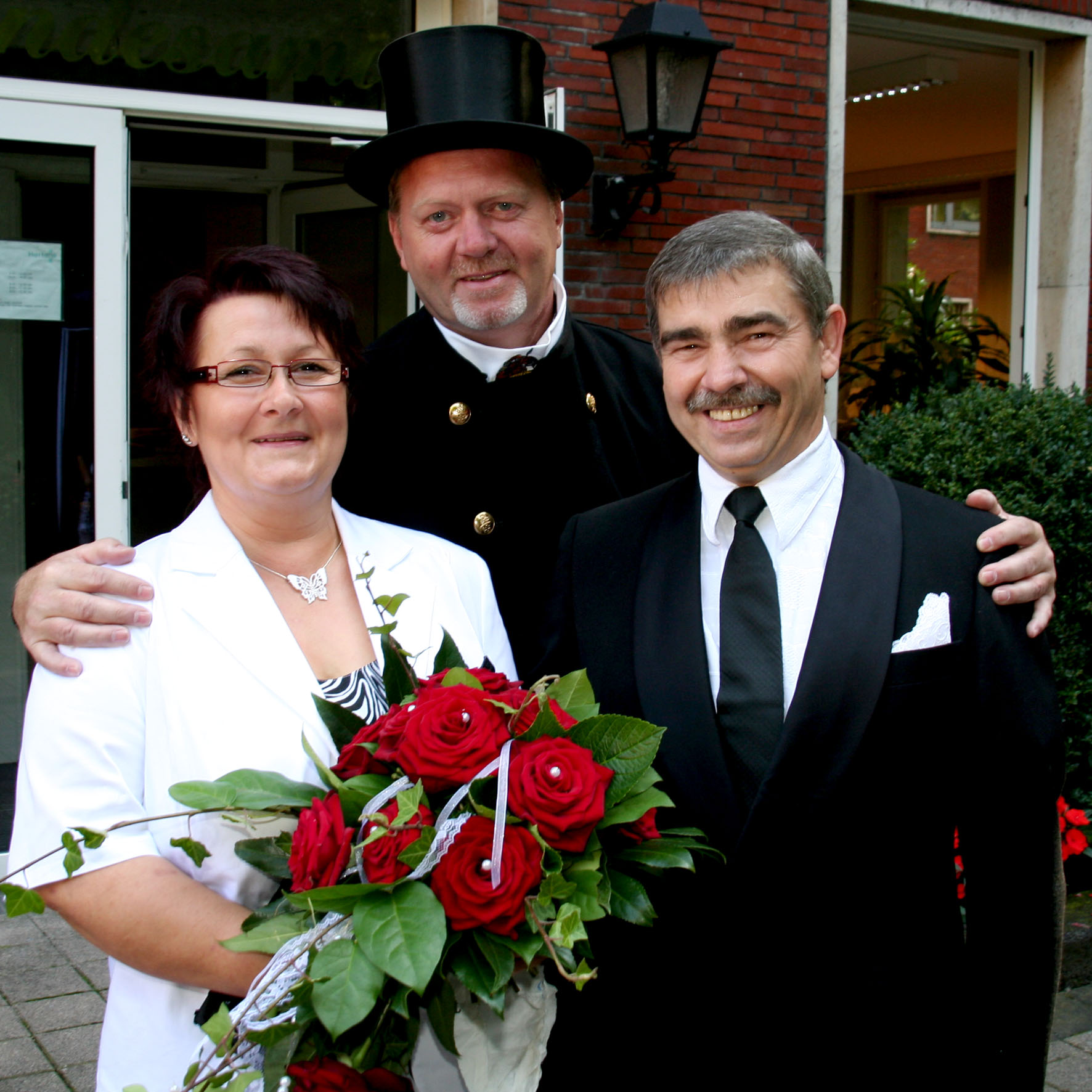 Ramona Lontke und Norbert Lehmann lernten sich vor 8 Jahren bei einem Besuch auf dem Spielplatz kennen: "Liebe auf den ersten Blick" Ab heute teilen sie einen gemeinsamen Nachnamen. Aus Lontke wurde Lonte-Lehmann. Schornsteinfegermeister Guido Schlering wünscht dem Paar viel Glück.