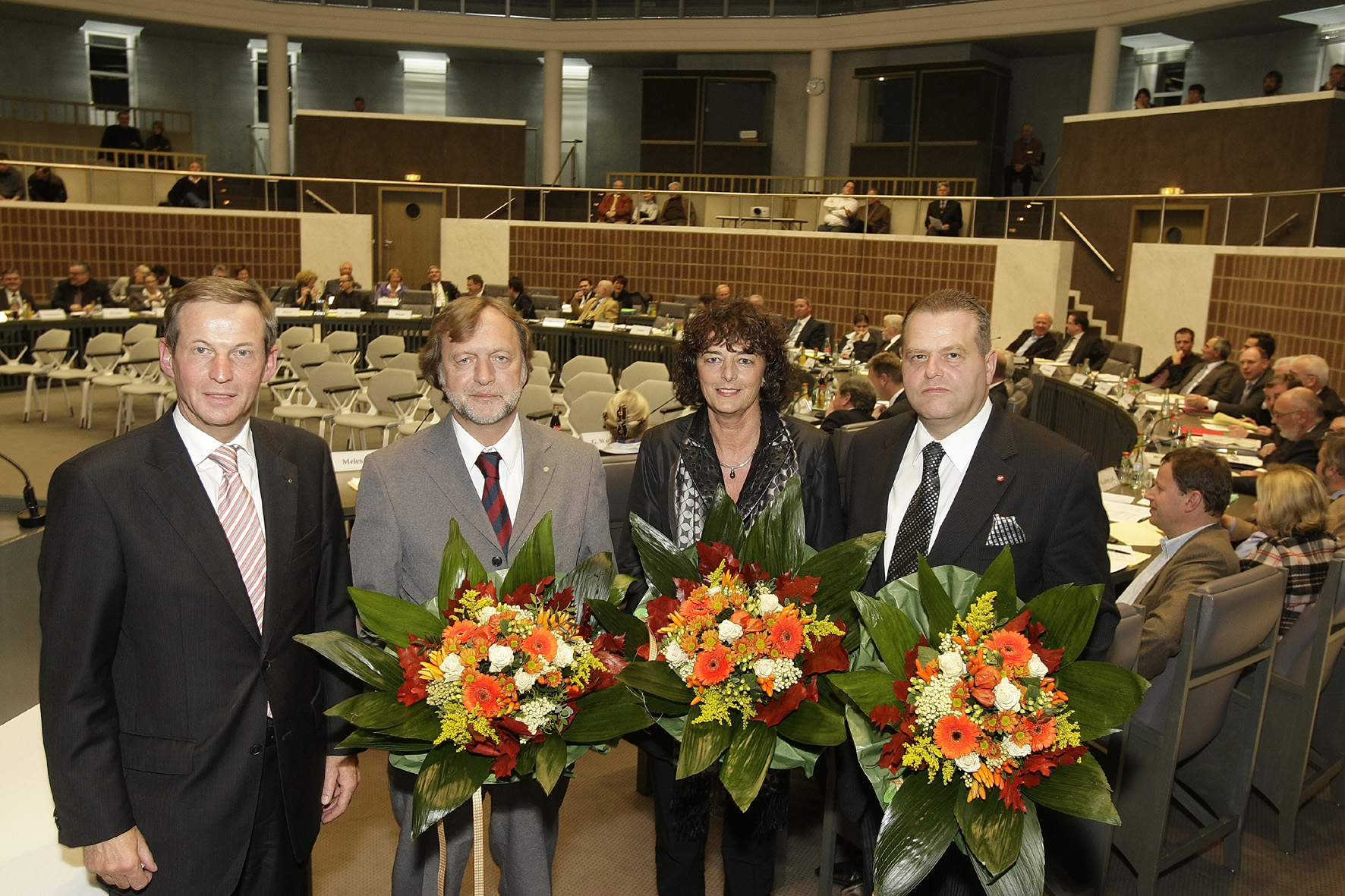 Landrat Peter Ottmann gratulierte den stellvertretenden Landräten Bernd Bedronka, Luise Fruhen und Udo van Neer (von links) zur Wahl. Foto: Alois Müller/Kreis Viersen - Abdruck honorarfrei