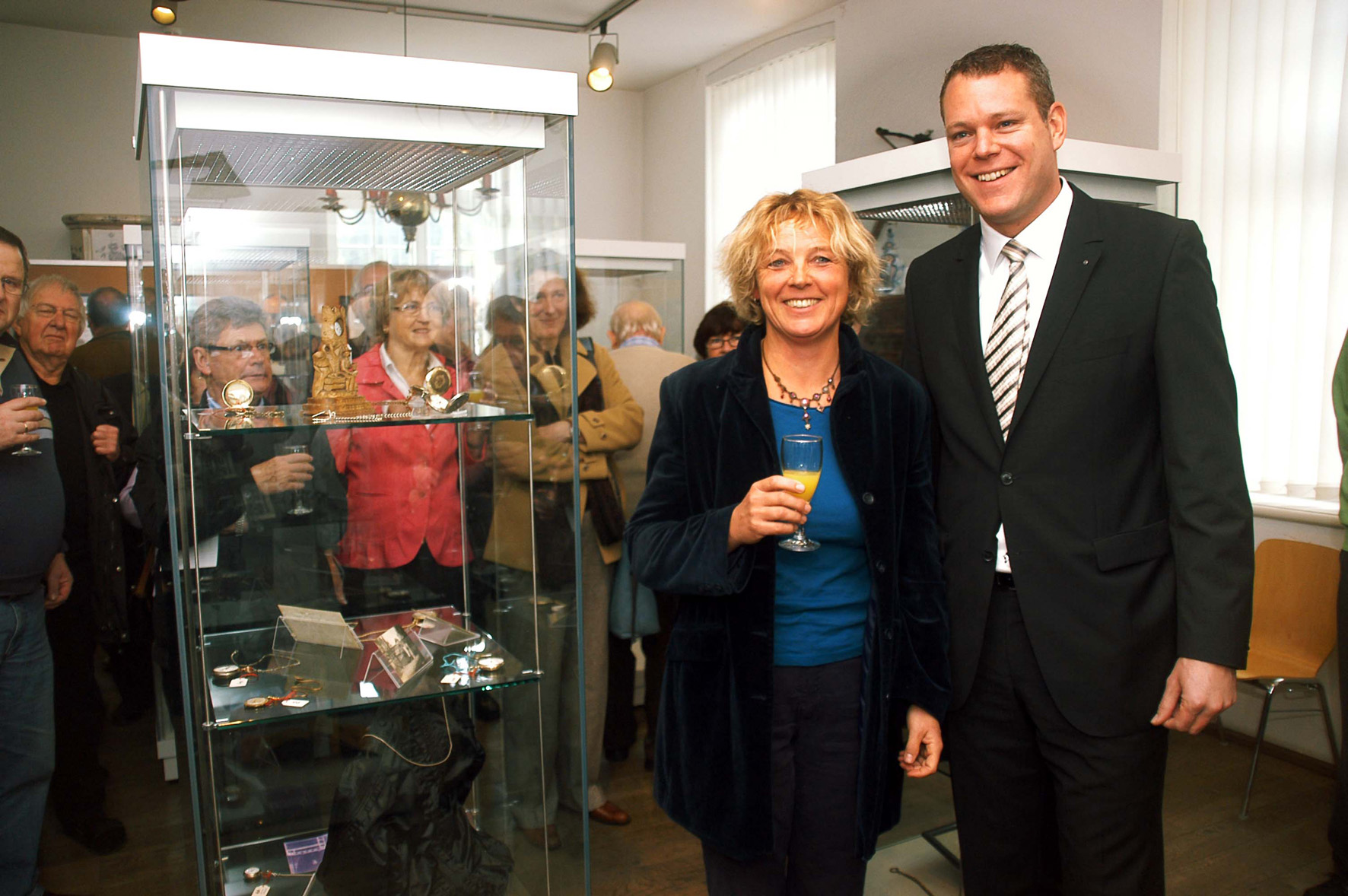 Die stellvertretende Museumsleiterin Dr. Katharina Hüsers-Döhmen, im Bild mit Kreisdirektor Dr. Andreas Coenen, verabschiedete sich mit der Sonderausstellung aus dem Niederrheinischen Freilichtmuseum. Foto: Horst Siemes/Kreis Viersen - Abdruck honorarfrei