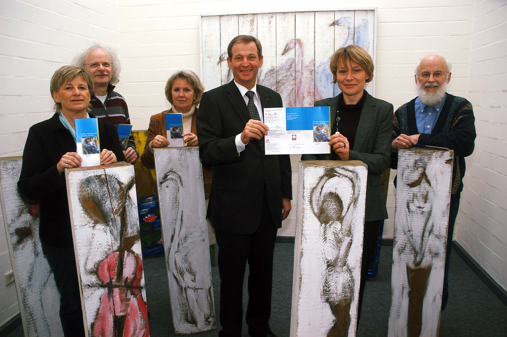 Die Projektpartner des Schülerwettbewerbs freuen sich auf kreative Projekte: Marita Gentsch, Freiwilligen-Zentrum Willich, Dr. Klaus-Peter Hufer, Kreisvolkshochschule Viersen, Hedwig Stirken, Freiwilligenagentur Kempen, Landrat Peter Ottmann, Claudia Derksen-Beyer und Benno Rulands, Freiwilligen-Zentrale Viersen (von links). Foto: Horst Siemes/Kreis Viersen - Abdruck honorarfrei