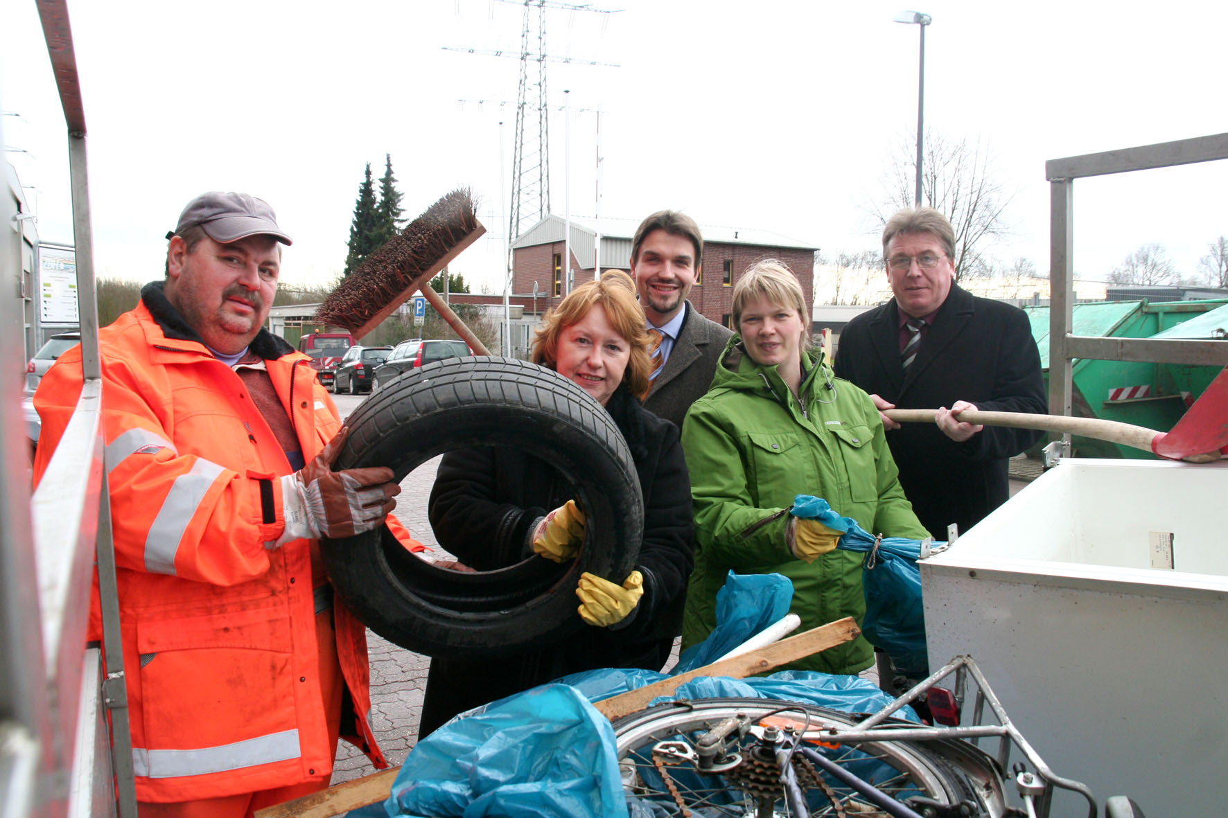 (v. li. n. re..:) ZBH-Mitarbeiter Uwe Rehfeldt, ZBH-Fachbereichsleiterin Helene Langner, Bürgermeister Dr. Uli Paetzel und Vera Zimmermann, Abfallberatung beim ZBH läuten den Putztag 2010 ein.