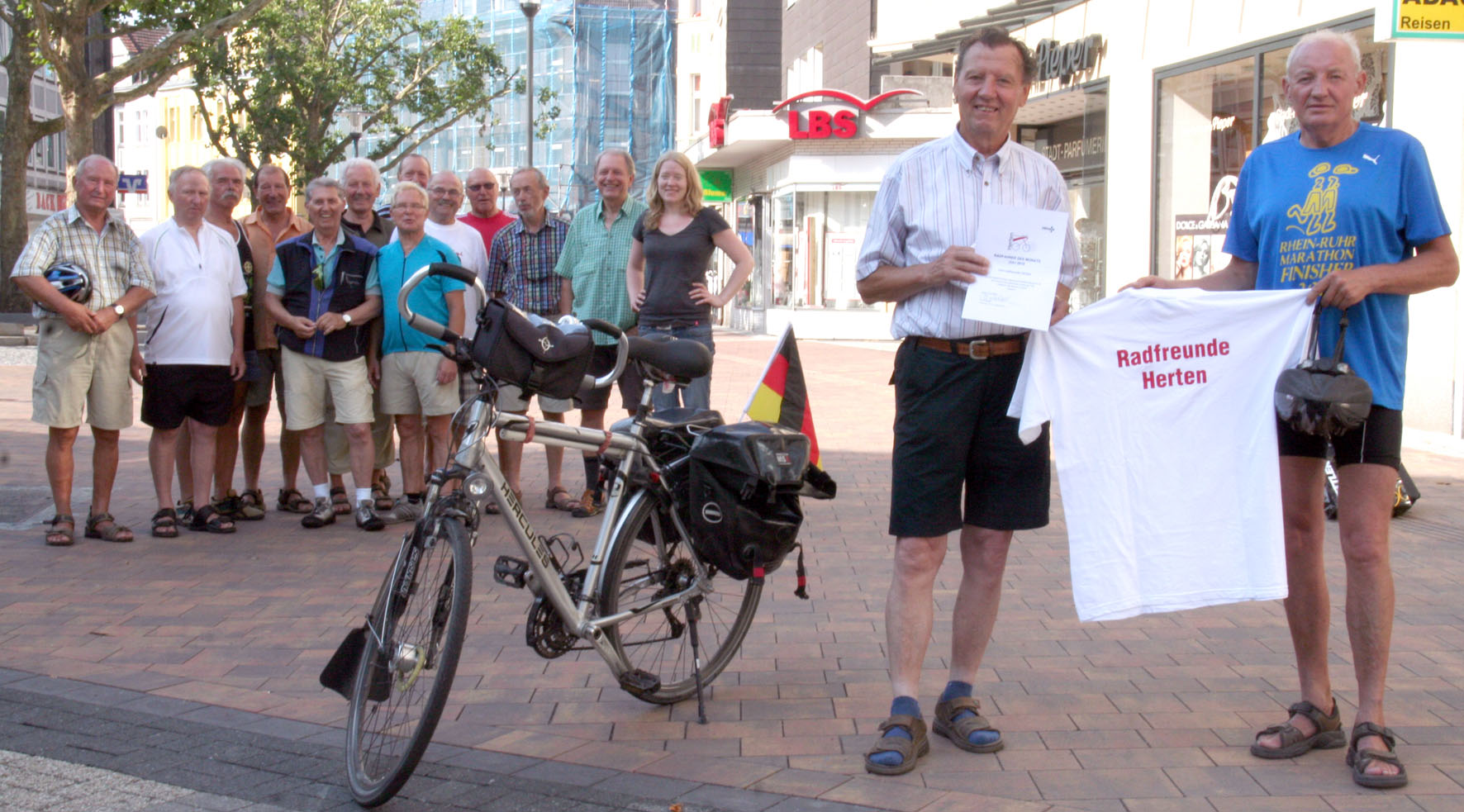 Irja Hönekopp (hi. re.) vom Projektteam fahrradfreundliche Stadt Herten überreichte den Fahrradfreunden Herten Urkunde und Geschenke.