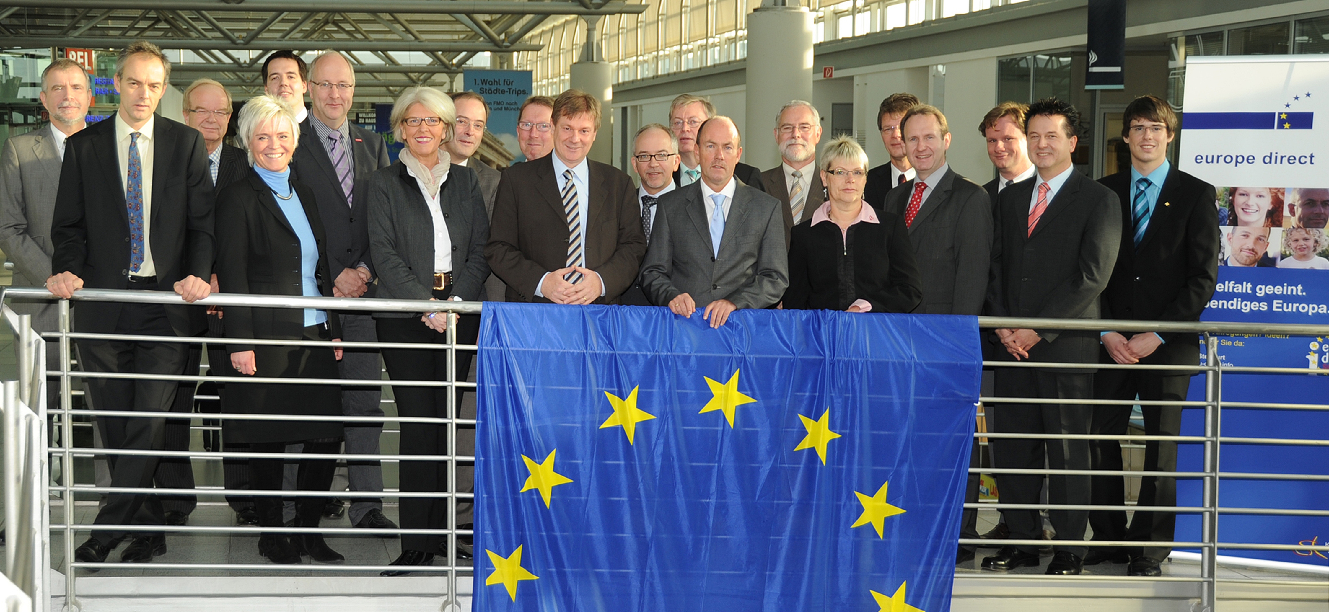 Europaabgeordneter Dr. Markus Pieper und Landrat Thomas Kubendorff (M.) beim Werkstattgespräch der Wirtschaftsförderungskonferenz Münsterland am Flughafen Münster/Osnabrück.