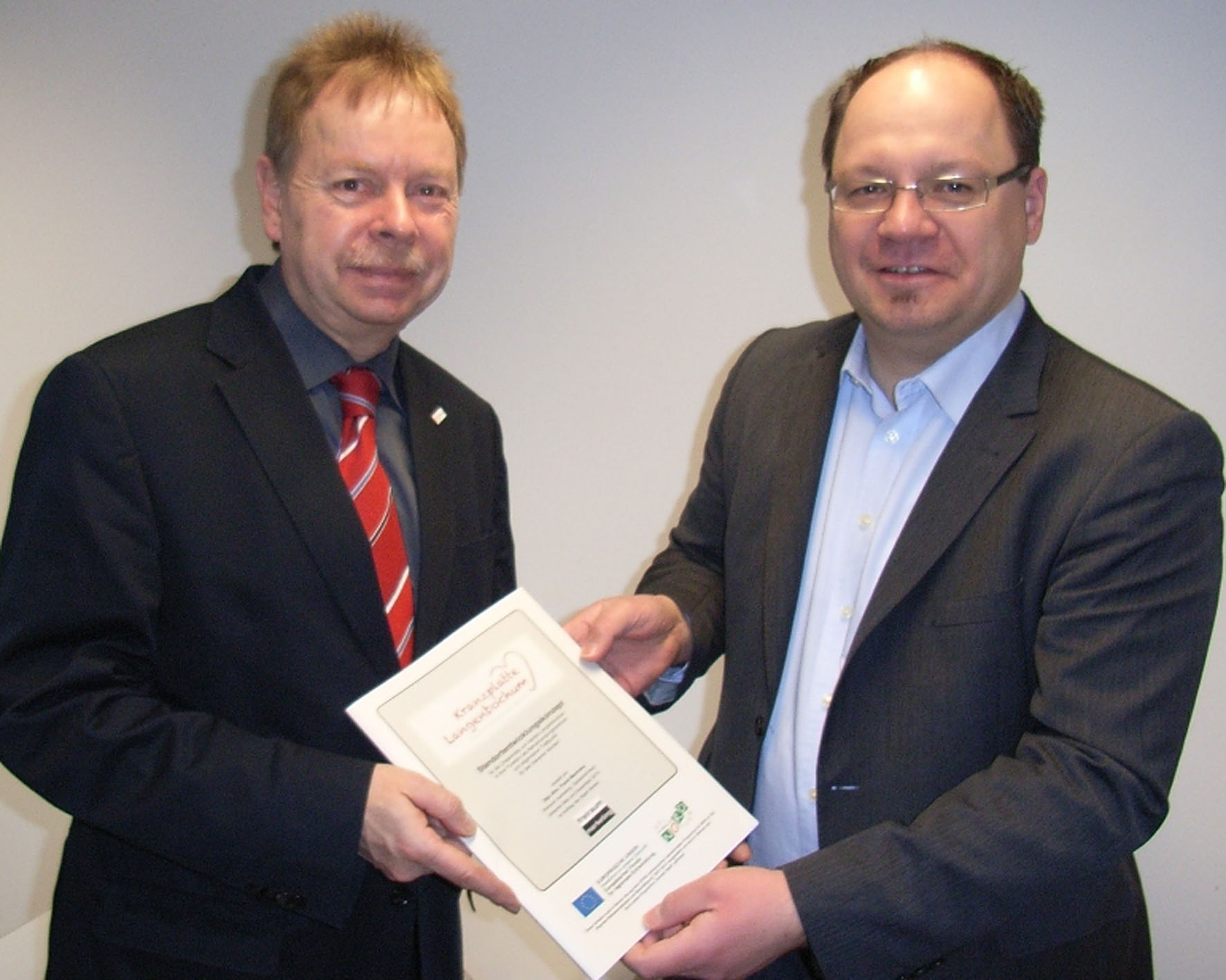 Frank Manfrahs (rechts) übergibt Stadtbaurat Volker Lindner das Entwicklungskonzept.