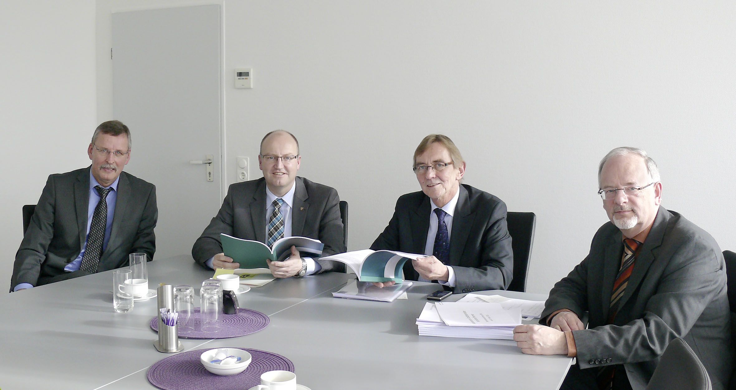 Sehen einer Zusammenlegung der Bauhöfe positiv entgegen (v.l.): Hemers Kämmerer Werner Dodt, Hemers Bürgermeister Michael Esken, Iserlohns Bürgermeister Dr. Peter Paul Ahrens und Iserlohns Kämmerer Friedhelm Kowalski.